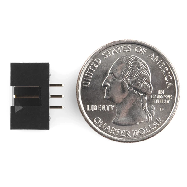 Simple shrouded 6-pin connector. Good for preventing cable connection mishaps. Use for programming, data, power, or any other kind of connection. 2×3 pins on 0.1″ centers.