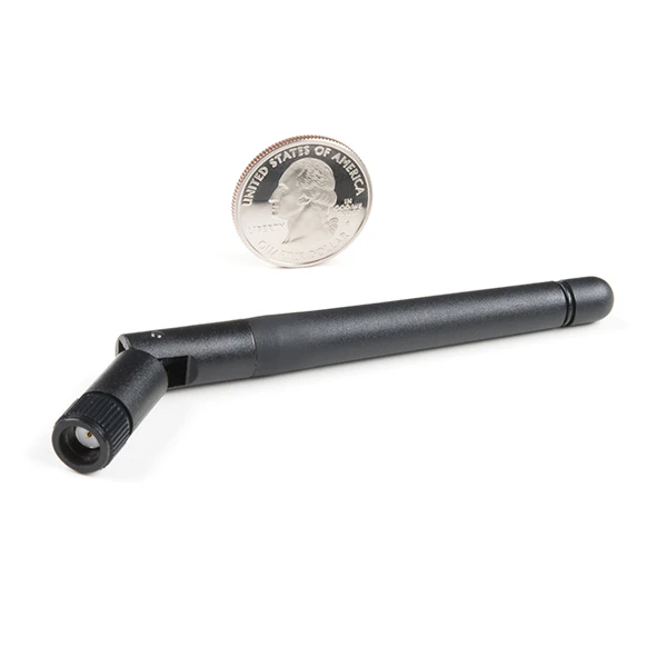 A small 1/4 wave rubber duck antenna for LoRa or other 860-960MHz communication. Antenna has a center frequency of 915MHz and utilizes an RP-SMA connector. Gain is 2dBi with an overall length of 110mm.