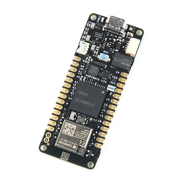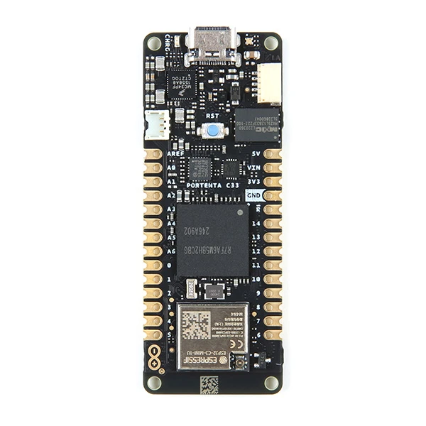 Ideal to develop cost-effective, real-time applications, Portenta C33 features the Arm® Cortex®-M33 microcontroller by global leader Renesas and supports MicroPython and other high-level programming languages. Thanks to its onboard Wi-Fi® and Bluetooth® Low Energy connectivity, the module stands out as an ideal solution for IoT gateways, remote control systems, fleet management and process tracking.