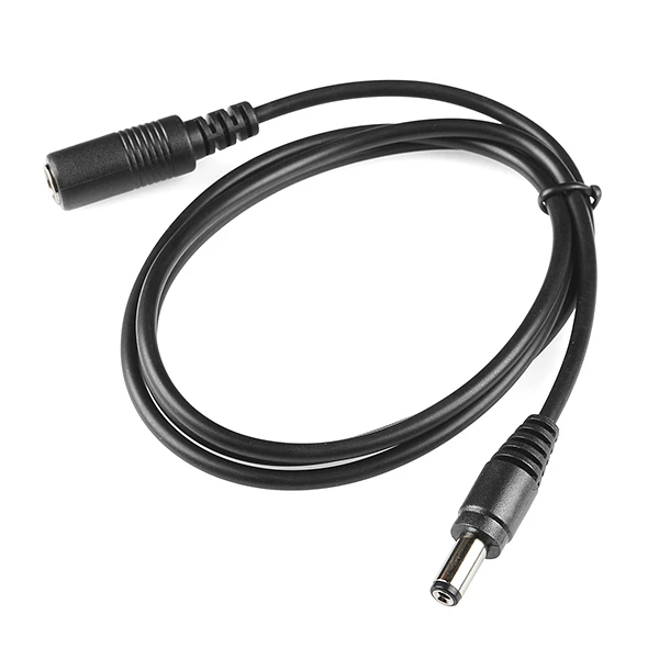 This cable is terminated with 5.5×2.1mm barrel connectors, one male and one female, and fits most of our products that use a DC barrel jack for power (RedBoard, RaspiRobot board, etc.)