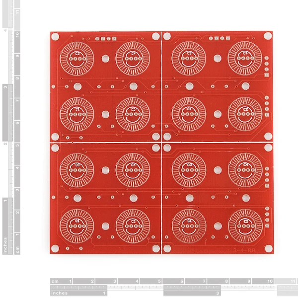 This a simple breakout PCB for our 4×4 silicone button pads. Each LED and button can brought out to the side connectors. The connectors are soldered to the back side of the PCB. We recommend trimming the connector leads on the button side as short as possible to reduce the deflection of the pad.