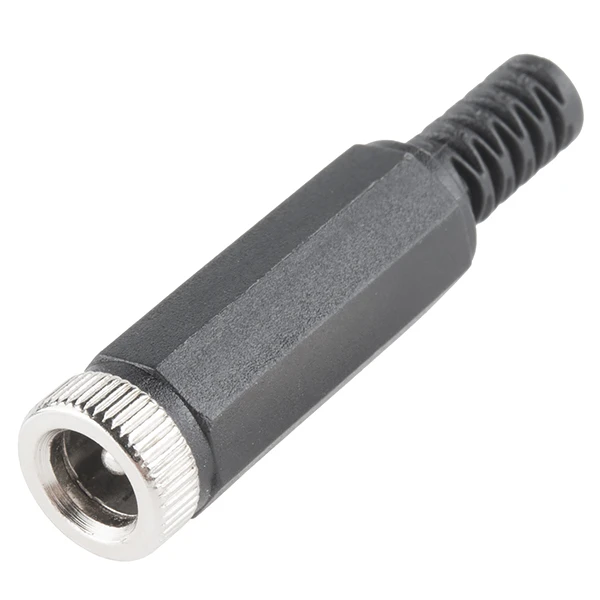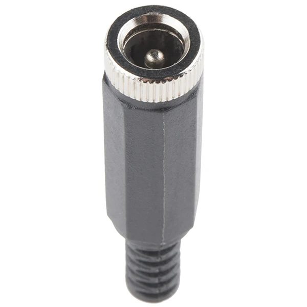 This female barrel jack plug is great for adding a common connector to the end of wires. This jack is compatible with 5.5×2.1mm barrel connectors. The outer shell unscrews to reveal solder terminals and a crimp strain relief. The outer shell has strain relief as well.