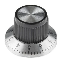 Do you need that extra push over the cliff? The Small sized GTE (Goes To Eleven) Knob can fit onto potentiometers with a 6mm wide shaft thanks to a brass insert with a set screw.