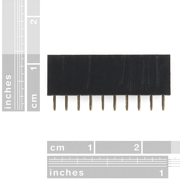 These are standard 0.1″ spaced header pins that can be through-hole mounted. This header connects perfectly with most 10-pin male headers.