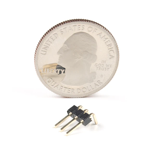 This is a simple 3-pin male PTH right angle header. Each pin can even be broken apart if you only need one or two pins instead of all three.