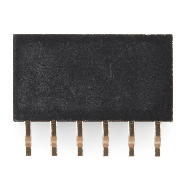 This is a SMD 6 pin right angle female header. We realized that we have had the male version of this header available for awhile now, but never the female. Now you have the ability to get both!
