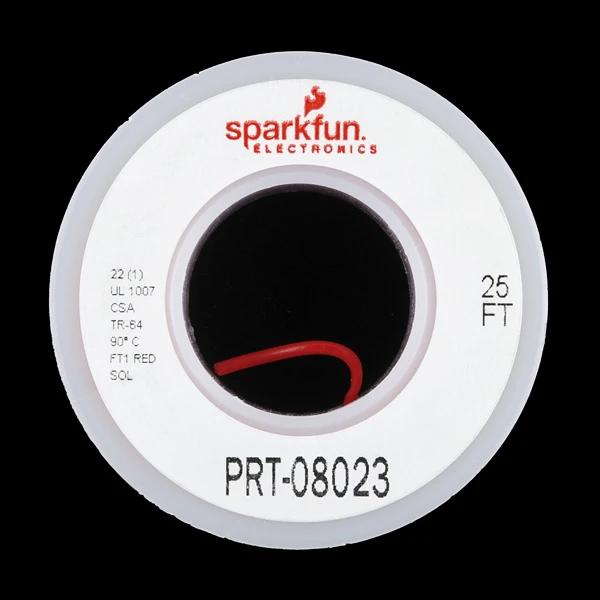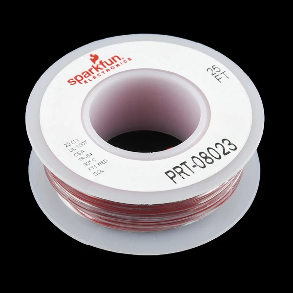 Standard 22 AWG solid Red hook up wire. Use this with your bread board or any project in which you need sturdy wire. Comes in small spools of 25′.