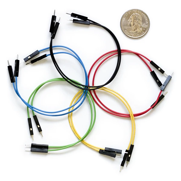 This is a SparkFun exclusive! These are 155mm long, 26 AWG jumper wires. Multiple jumpers can be installed next to one another on a 0.1″ header. Comes as 1 package of one hundred jumpers (colors shown), 50 pieces male-to-male and 50 pieces female-to-female.