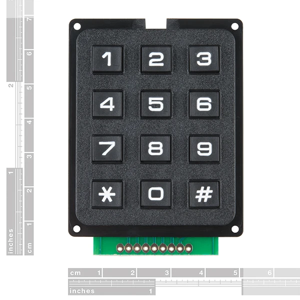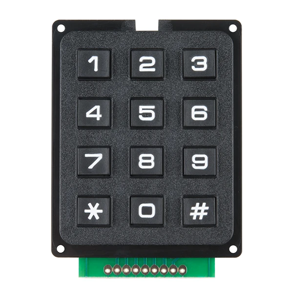 This is a basic 12 button keypad that has been designed for easy user input and functionality. The buttons are set up in a matrix format. This allows a microcontroller to ‘scan’ the 7 output pins to see which of the 12 buttons is being pressed.