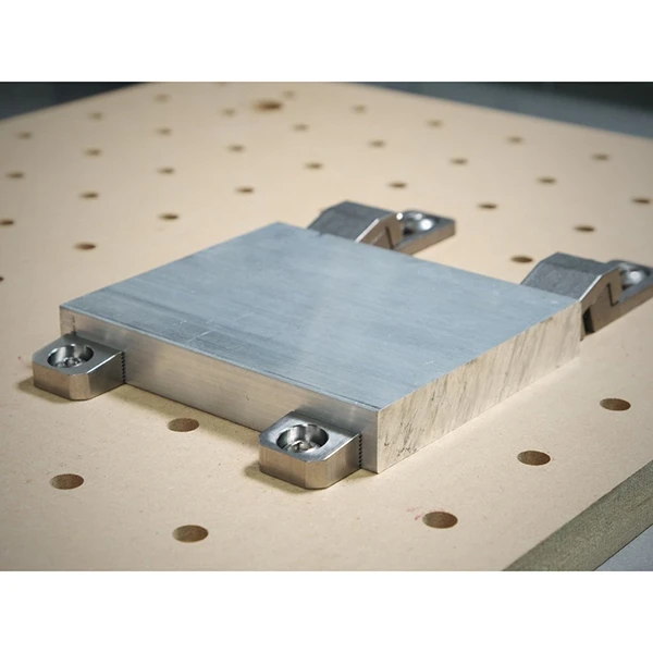 The Lock Stop is a low profile, high-quality stainless steel stop that can be used on the Nomad or the Shapeoko in conjunction with the Tiger Claw (Standard or Compact), or Gator Tooth Clamps.