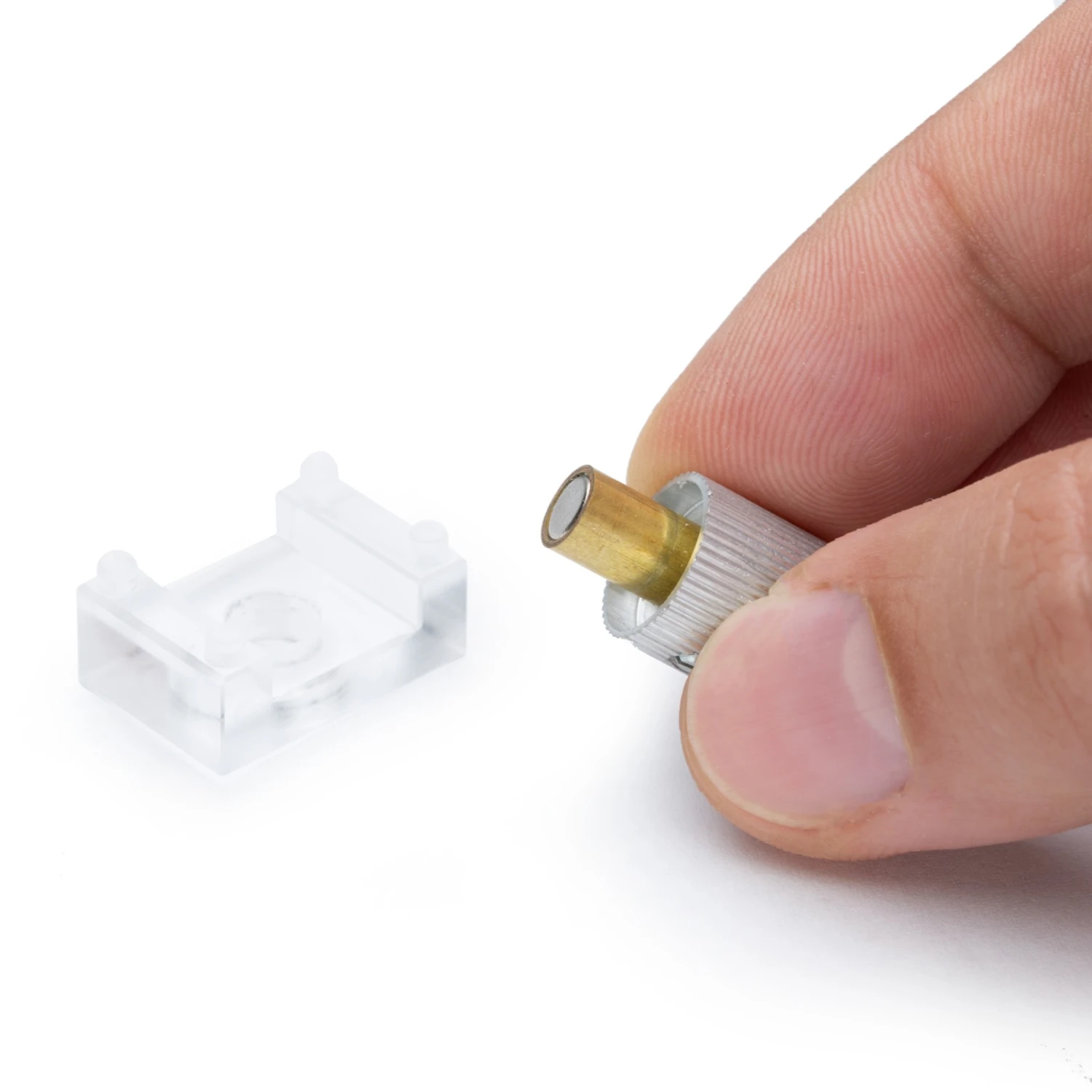 Rotary Magnetic Holder represents a solution designed for use alongside magnetic rotary position sensors. It comes with a plastic stand measuring 22x16x10 millimeters (L x W x H), as well as an adjustable shaft with a 6mm diameter magnet, allowing fast prototyping and quick measurements during development.