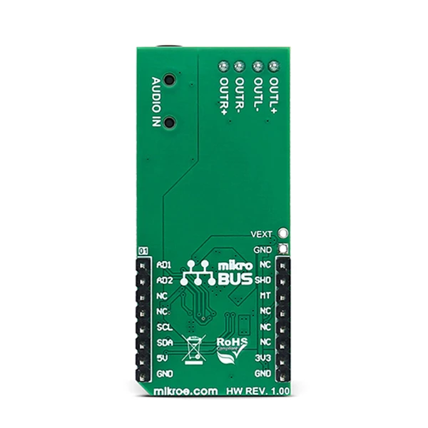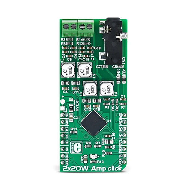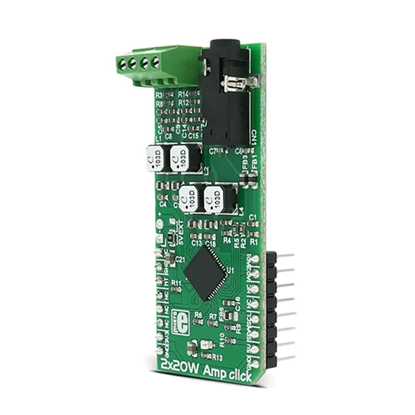 2x20W Amp Click carries the MAX9744 stereo class D audio power amplifier from Analog Devices. This Click brings the Class AB sound performance with Class D efficiency. The perfect combination for your speakers. 2x20W Amp Click also offers 64 step volume control, single-supply operation, adjustable gain, and industry-leading click-and-pop suppression.