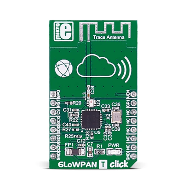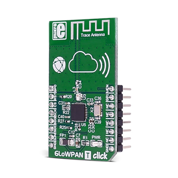 6LoWPAN T Click carries the CC2520 2.4GHz RF transceiver. The Click is designed to run on a 3.3V power supply. It communicates with the target microcontroller over SPI interface, with additional functionality provided by the following pins on the mikroBUS™ line: PWM, INT, RST, AN.