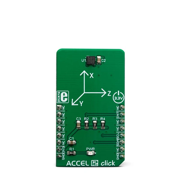 Accel 12 Click uses the I2C communication interface. It has pull-up resistors connected to the mikroBUS™ 3.3V rail. Proper conversion of logic voltage levels should be applied before the Click board™ is used with MCUs operated with 5V.