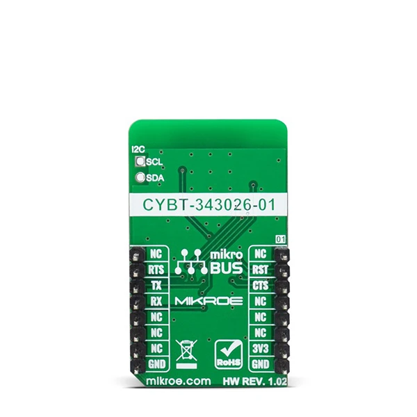 The BT-EZ Click is a Click board™ which provide BLE connectivity for any embedded application. BT-EZ Click based on the CYBT-343026-01 module, from Infineon. This Click board™ is a fully integrated bluetooth low energy module, mentioned for easy integration into various electronic devices. Given its features, this Click can be used for health, sports, and wellness devices as well as Industrial, home, and building automation; and smart phone, tablet, and PC accessories.