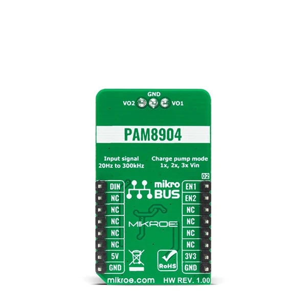 Buzz 3 Click is based on the PAM8904, a piezo-sounder driver with an integrated Multi-Mode charge pump boost converter from Diodes Incorporated. The PAM8904 is a switching driver with a multi-mode charge pump for piezo-sounder. Operating at a fixed frequency of 1MHz, the PAM8904 can drive a sounder load of up to 15nF, providing a 9V output with a minimal component footprint. For adjusting the piezoelectric sounder sound volume, the charge pump can operate in either of a 1x, 2x, or 3x mode. It features thermal shutdown, over-current, and voltage protection, under-voltage lock-out, and provides a small inrush current, low EMI, and high efficiency.