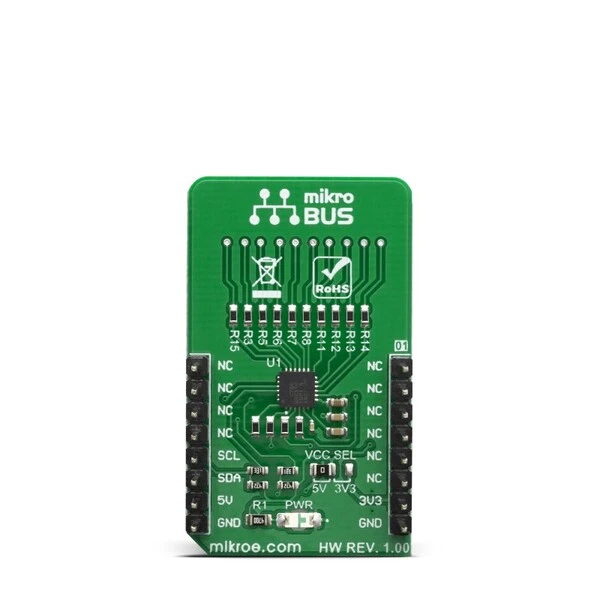 Cap Touch 5 Click is a capacitive touch sensing Click board™ which features the CY8CMBR3106S-LQXI CapSense® Express™ controller which enables advanced, yet easy-to-implement, capacitive touch sensing user interface solutions. It supports up to 16 capacitive sensing inputs, eliminates time-consuming firmware development. This controller is ideal for implementing capacitive buttons, sliders, and proximity sensing solutions with minimal development-cycle times.