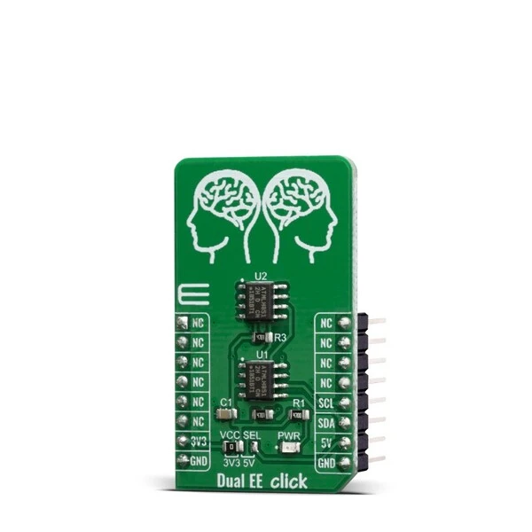 Dual EE Click contains two AT24CM02 EEPROM ICs onboard which gives total of 4MB of memory. Each memory IC can be addressed through the I2C interface with the transfer speed of 400KHz. This Click board™ offers any kind of temporary or permanent data storage for various. embedded electronic devices, as well as simple data logging or even storing various working parameters of a certain module or device. It can also safeguard all of the sensitive data in case of a particular power cycle and it has many other capabilities.