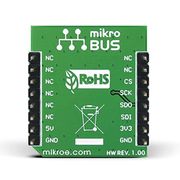This Click board™ uses the SPI communication protocol. To ensure reliable data transaction and to avoid accidental write to the memory array, the device employs certain protection mechanisms. When the M95M02 IC is powered up and when the power supply voltage reaches a certain threshold, the device will reset itself, setting up the internal logic in a known state. In addition, before writing any data to the IC which modifies registers or the array itself, the WEL bit must be set. This bit is cleared after or during every memory modification instruction. Therefore every memory modification instruction must be prefixed with the Write Enable instruction that sets this bit. This mechanism ensures that only the intended write instruction will be executed.