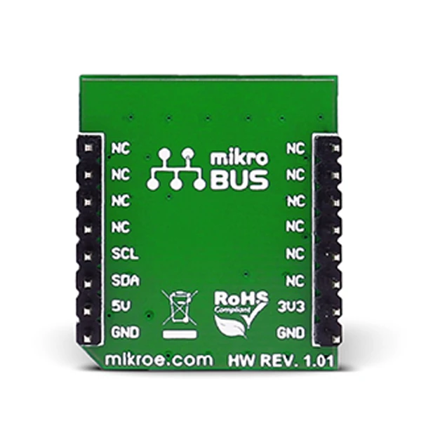 The attached device datasheet contains an in-depth explanation of all the mentioned functions. However, MikroElektronika provides a library with functions that make the final code clean and readable, simplifying working with this device. These functions internally employ the aforementioned communication mechanism and expose only a simple and clean interface to the user. The provided example code demonstrates the functionality of these functions. It can be used as a reference point for a custom development.