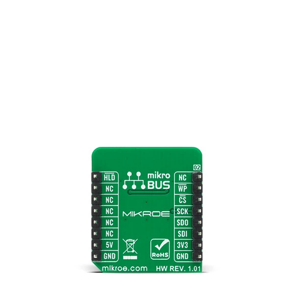 This Click board™ is designed to operate with both 3.3V and 5V logic voltage levels selected via the VCC SEL jumper. It allows for both 3.3V and 5V capable MCUs to use the SPI communication lines properly. However, the Click board™ comes equipped with a library that contains easy to use functions and an example code which can be used, as a reference, for further development.