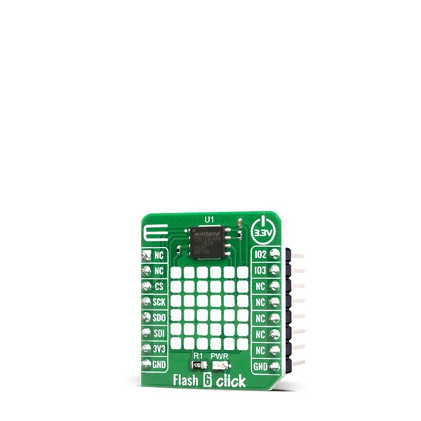 The Flash 6 Click based on W25Q128JV (128M-bit) flash memory from Winbond provides a storage solution for systems with limited space, pins and power. The 25Q series offers flexibility and performance well beyond ordinary Serial Flash devices. They are ideal for code shadowing to RAM, executing code directly from Dual/Quad SPI (XIP) and storing voice, text and data. The small 4KB sectors allow for greater flexibility in applications that require data and parameter storage.