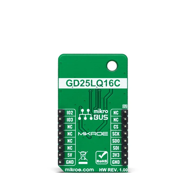 Flash 7 Click is a compact add-on board that contains a high-performance memory solution. This board features the GD25LQ16C, a high-performance 16Mbit SPI NOR Flash Memory solution with advanced security features from GigaDevice Semiconductor. It is specifically designed to meet the different needs in various electronic applications in terms of density, performance, reliability, and security while providing low power consumption. It requires only 6 signals to communicate between the MCU and the memory, thus reduces the design complexity and offers a reduction in board space and total system cost. This Click board™ provides a storage solution for systems with limited space in various embedded applications.