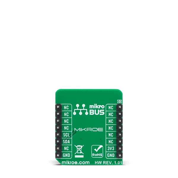 This Click board™ uses the I2C communication interface. It is designed to be operated only with 3.3V logic levels. A proper logic voltage level conversion should be performed before the Click board™ is used with MCUs with logic levels of 5V. More information about the 34-00004 Force Sensing Resistor can be found in the attached datasheet. However, the Click board™ comes equipped with a library that contains easy to use functions and a usage example that may be used as a reference for the development.