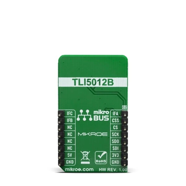 The GMR Angle Click is a Click board™ that features the TLI5012B E1000, which is a pre-calibrated 360° angle sensor that detects the orientation of a magnetic field, made by Infineon. The GMR Angle Click is ideal for angular position sensing in industrial and consumer applications such as electrical commutated motor (e.g. BLDC), fans or pumps.