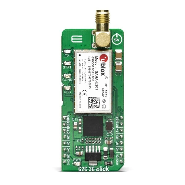 G2C 3G Click performs several tasks on its side, which are required to connect to the Click Cloud platform. To establish the connection, an access to a local UMTS/HSPA network with sim card option. For a reliable 3G (UMTS/HSPA) network connection, the Click board™ utilizes the u-Blox SARA U-201 module can be used worldwide.