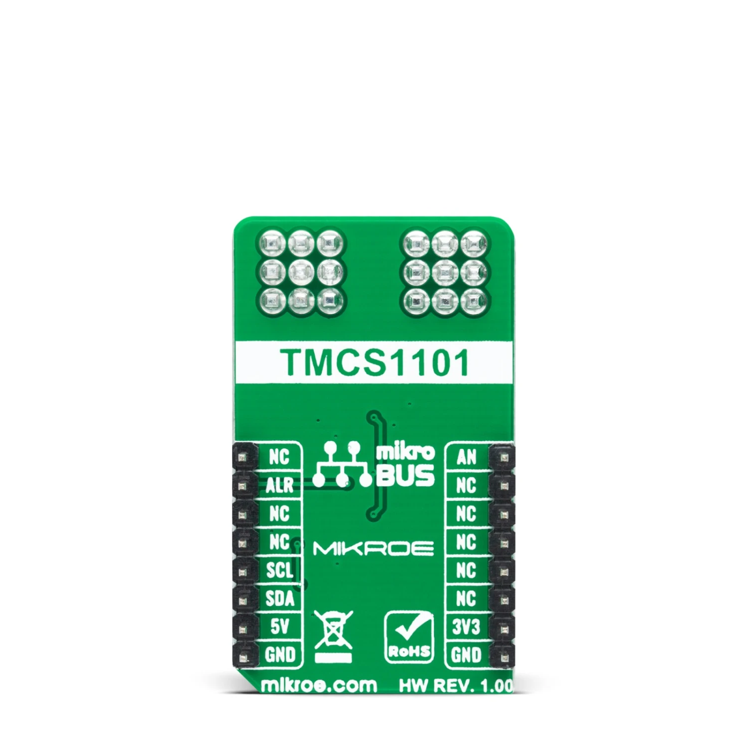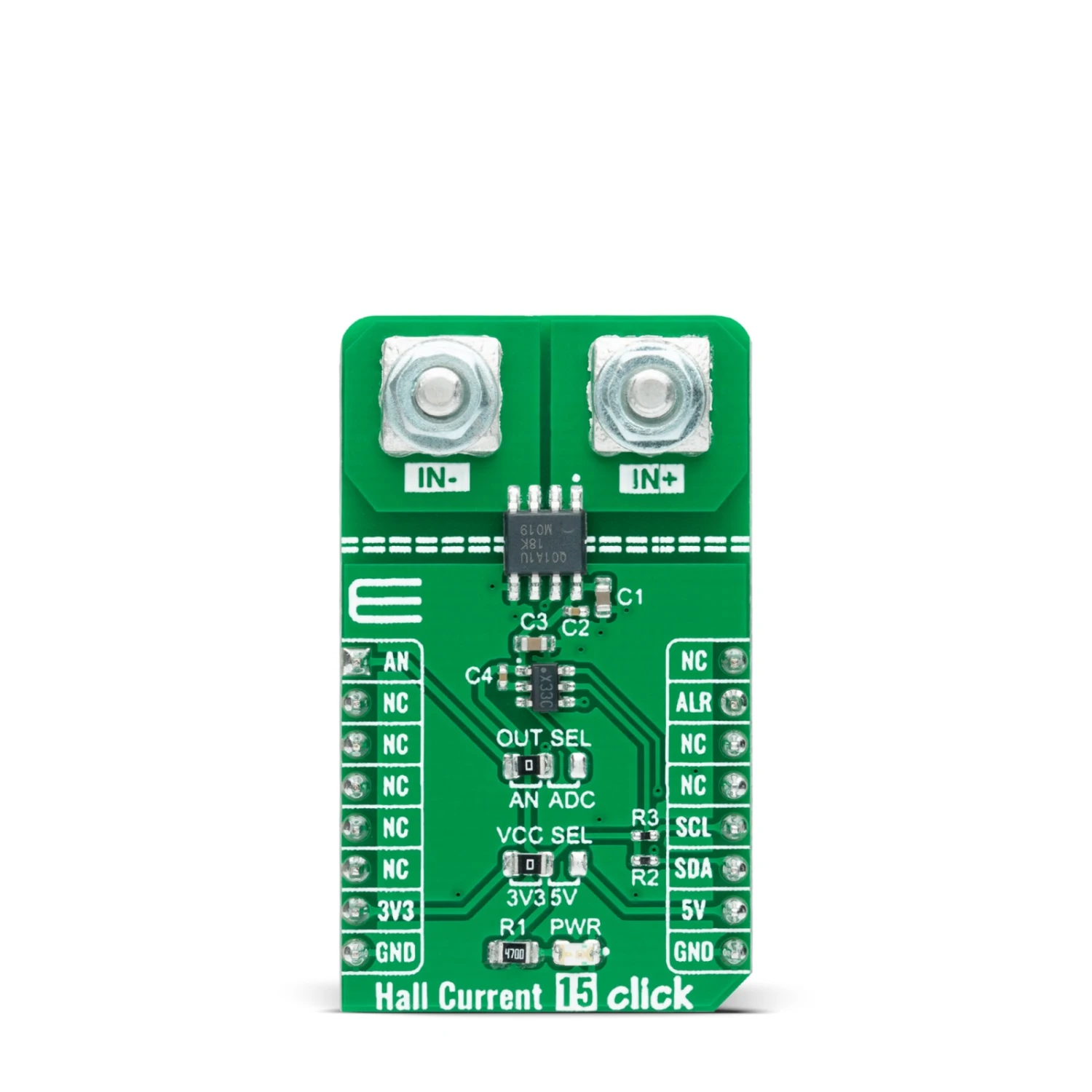 Hall Current 15 Click is a compact add-on board that provides precise AC or DC current-sensing solution. This board features the TMCS1101-Q1, a galvanically isolated Hall-effect current sensor capable of DC or AC current measurement with high accuracy, excellent linearity, and temperature stability from Texas Instruments. A low-drift, temperature-compensated signal chain provides <1.5% full-scale error across a broad operating temperature range. It also provides a reliable 600V lifetime working voltage and 3kVRMS isolation between the current path and circuitry with uni/bidirectional current sensing. Besides, the user is allowed to process the output signal in analog or digital form. This Click board™ is suitable for AC or DC current-sensing in industrial and commercial systems, motor and load control, power factor correction, overcurrent protection, and more.