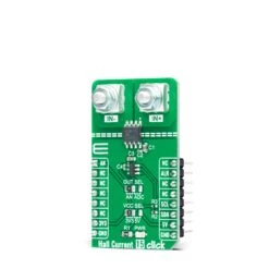 Also, this Click board™ should be connected in series with the load. The current is measured by two onboard terminal connectors, one terminal block for the positive and the other for the negative current input.