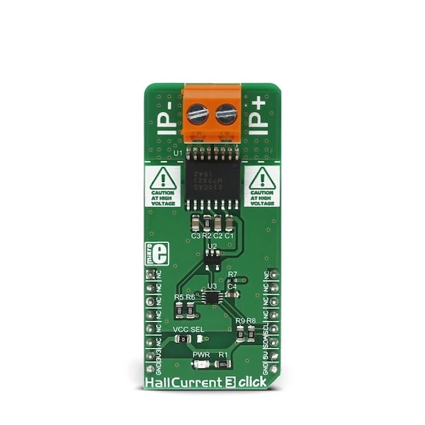 Featuring a reasonably high current range that can be measured, extremely low series resistance, a differential current sensing by two integrated Hall plates, offering robustness and resistance towards external magnetic interferences, high isolation voltage of the IC itself, very low thermal drift, and fast response time with no hysteresis, this Click board™ can be used for a wide range of measuring and monitoring applications in audio applications, telecommunication applications, white goods applications, and basically in every application which requires reasonably high current measurement or monitoring.