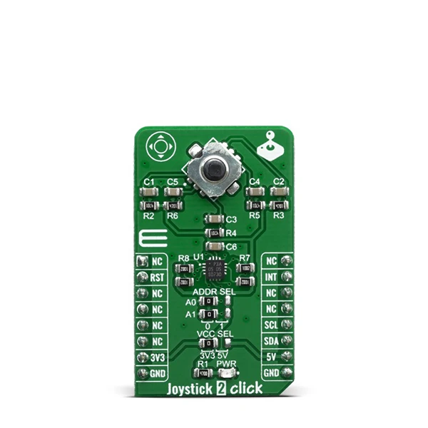 Joystick 2 Click is a smart navigation key concept based on SKRHABE010 by Alps, a 4-direction joystick switch with Center-push Function. Alps switches, also known as microswitches, are well renowned for their reliability and endurance. Joystick switches of this kind are widely used in many different applications. Joystick 2 Click can be used in numerous different applications, as a human-machine interface device (HMI), such as cell phones, tablets, terminals, video games, toys, and many more.