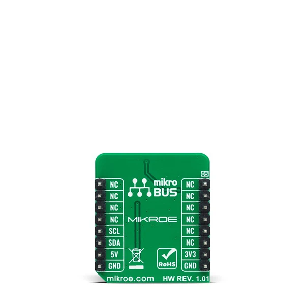This Click board™ can operate with both 3.3V and 5V logic voltage levels selected via the VCC SEL jumper. This way, it is allowed for both 3.3V and 5V capable MCUs to use the I2C communication lines properly. However, the Click board™ comes equipped with a library that contains easy-to-use functions and an example code that can be used, as a reference, for further development.