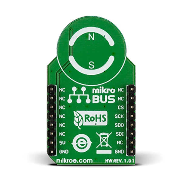Magneto 2 Click communicates with the target MCU through the mikroBUS™ SPI bus. The board is designed to use a 5V power supply only.