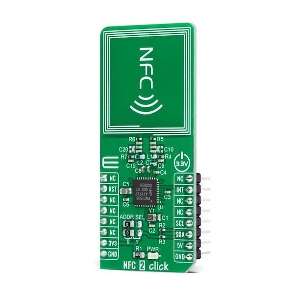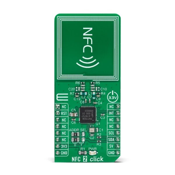 NFC 2 Click is based on the PN7150, high-performance full NFC solution with integrated firmware and I2C interface designed for contactless communication at 13.56 MHz from NXP USA Inc. This board has full compliance with NFC Forum specification that means that you will be able to use the full potential of NFC. It is the ideal solution for rapidly integrating NFC technology in any application, especially those running O/S environments like Linux and Android, reducing size and cost thanks to embedded NFC firmware providing all NFC protocols as a pre-integrated feature and ultra-low power consumption.