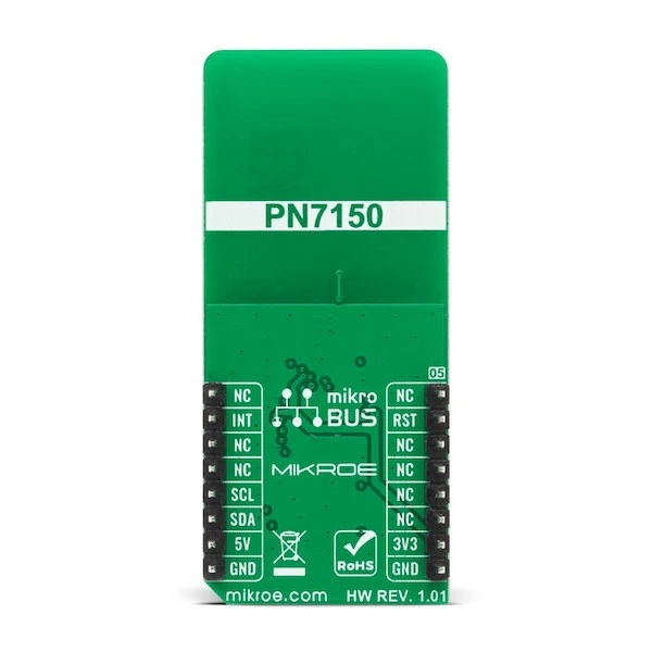This Click board™ is designed to be operated only with a 3.3V logic voltage level, while 5V is used as transmitter input supply voltage of PN7150. A proper logic voltage level conversion should be performed before the Click board™ is used with MCUs with different logic levels. However, the Click board™ comes equipped with a library that contains easy to use functions and an example code which can be used, as a reference, for further development.