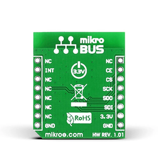 nRF C Click is an add-on board in mikroBUS™ form factor. It features Nordic nRF24L01P 2.4 GHz transceiver module with an embedded baseband protocol engine as well as 2.4 GHz SMD chip antenna. The board supports an air data rate of 250 Kbps, 1 Mbps and 2 Mbps and it is suitable for ultra low power designs. Typical applications include wireless PC peripherals, remotes, VoIP headsets, game controllers, sensors, home and commercial automation, active RFID, toys, etc. nRF C Click communicates with target board microcontroller via mikroBUS™ SPI (SDI, SDO, SCK, CS#), CE and INT lines. The board is designed to use 3.3V power supply only.