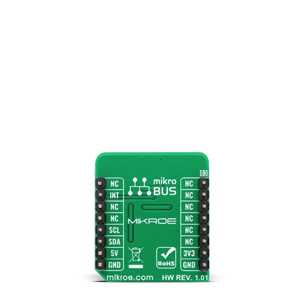 This Click board™ is designed to be operated with both 3.3V and 5V logic voltage levels that can be selected via VCC SEL jumper. This allows for both 3.3V and 5V capable MCUs to use the I2C communication lines properly.