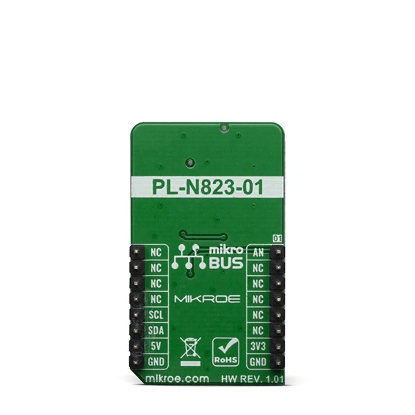 Some of the numerous benefits of using this particular Click, equiped with the PL-N823-01 infrared sensor, are a wide view angle up to 60 degrees ether way, detection possible through glass or resin, low power consumption, excellent radio wave performance in high-frequency band, a compact and low profile (5.0×4.8×1.7mm) and all of this is possible without a lens because it is not required. The low power consumption that we are speaking of is down in the μA range. When it comes to the performance characteristics, the operating temperature should be between -40C to +70C and the storage temperature should be between -40C to +85C.