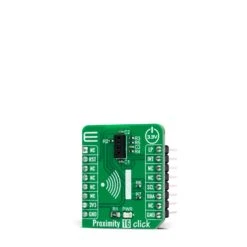 Proximity 16 Click is a compact add-on board that contains a close-range proximity sensing solution. This board features the VL53L5CX, a Time-of-Flight (ToF) multizone ranging sensor from STMicroelectronics. The VL53L5CX integrates a SPAD array, physical infrared filters, and diffractive optical elements (DOE) to achieve the best-ranging performance in various ambient lighting conditions with different cover glass materials. It allows absolute distance measurement, whatever the target color and reflectance, provides accurate ranging up to 400cm, and can work at fast speeds (60Hz). Also, multizone distance measurements are possible with either 4×4 or 8×8 separate zones with broad 63° diagonal software-configurable Field-of-View (FoV). This Click board™ is suitable for multizone and multi-object distance detection, content management, gesture recognition, and various consumer and industrial applications.