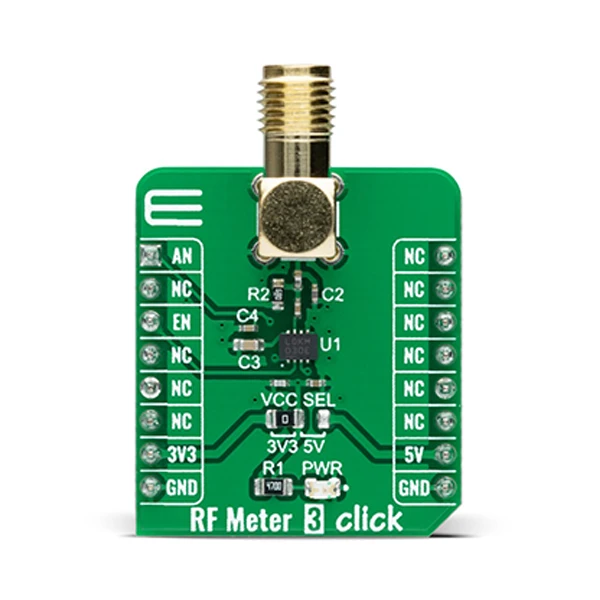 RF Meter 3 Click is a compact add-on board that collects information, analyzes RF power, and displays information in an easy-to-read digital format. This board features the LT5581, a low-power monolithic precision RMS power detector from Analog Devices. The RMS detector uses a proprietary technique to accurately measure the RF power in a range from 2GHz up to 2.6GHz, well-suited for signals with high crest factors. It outputs a DC voltage in linear scale proportional to an RF input signal power in dBm. This Click board™ is suitable for precision power measurement and control for various RF standards, including GSM/EDGE, CDMA, CDMA2000, W-CDMA, TD-SCDMA, UMTS, LTE, and WiMAX.