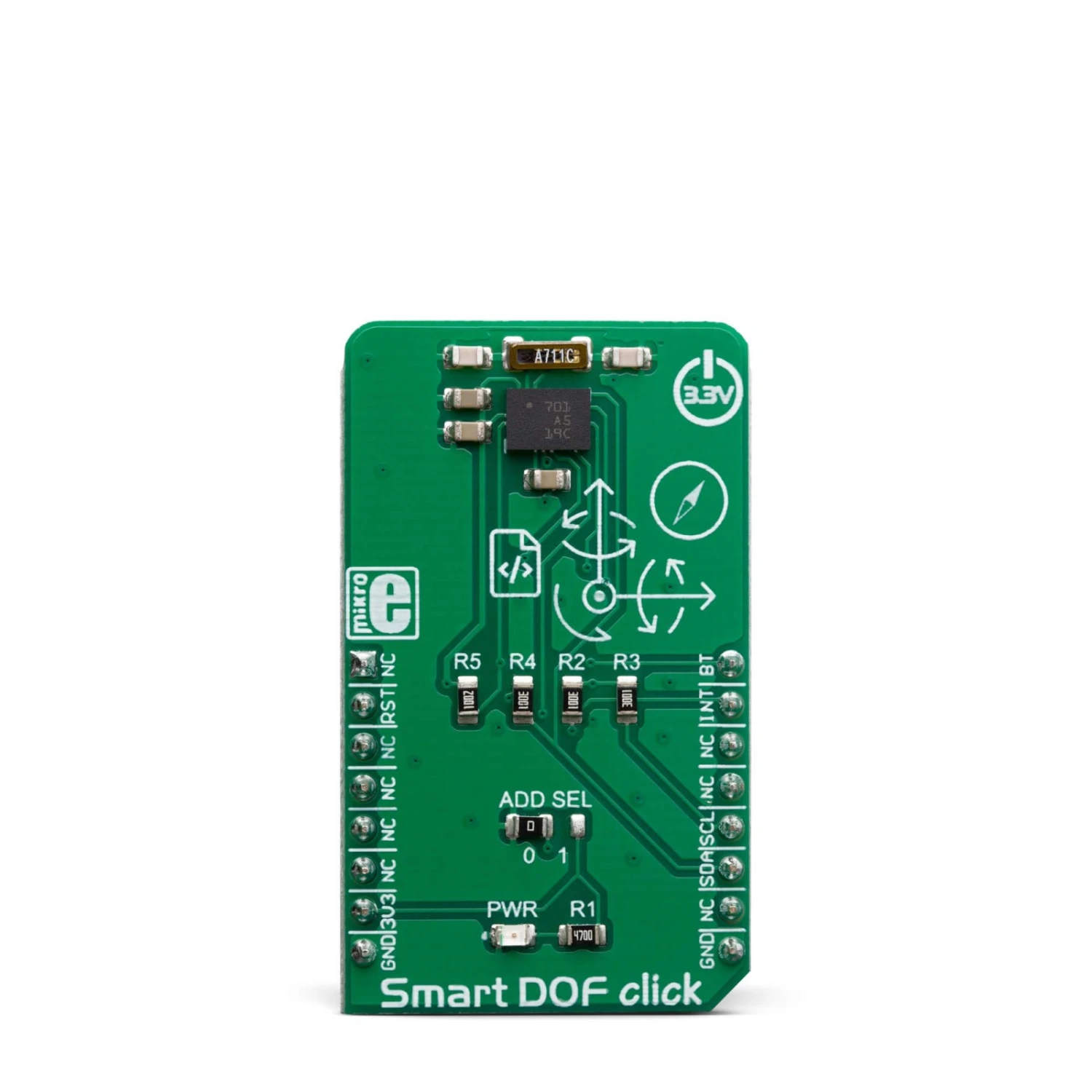 SmartDOF Click is supported by a mikroSDK compliant library, which includes functions that simplify software development. This Click board™ comes as a fully tested product, ready to be used on a system equipped with the mikroBUS™ socket.