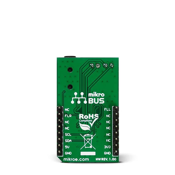 MIKROE StereoAmp Click functions as a stereo amplifier and is ideal for battery operated devices or as a lab amplifier.