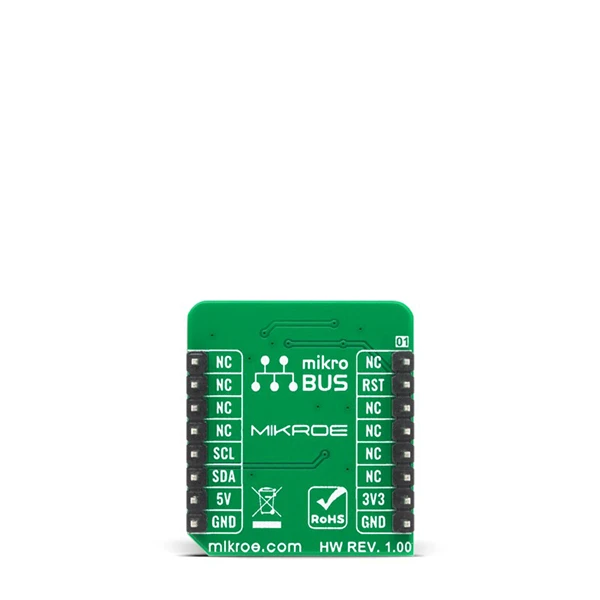 This Click board™ is designed to be operated with both 3.3V and 5V logic voltage levels that can be selected via VCC SEL jumper. This allows for both 3.3V and 5V capable MCUs to use the I2C communication lines properly. However, the Click board™ comes equipped with a library that contains easy to use functions and an example code that can be used as a reference for further development.