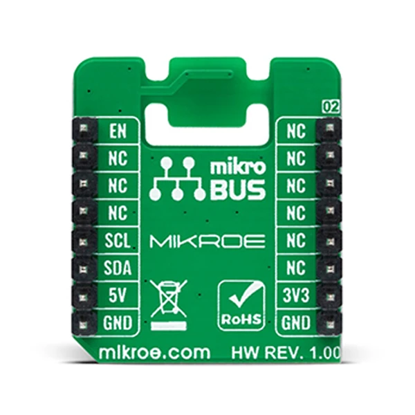 This Click board™ can operate with both 3.3V and 5V logic voltage levels selected via the VCC SEL jumper. This way, it is allowed for both 3.3V and 5V capable MCUs to use the I2C communication lines properly. However, the Click board™ comes equipped with a library containing easy-to-use functions and an example code that can be used, as a reference, for further development.