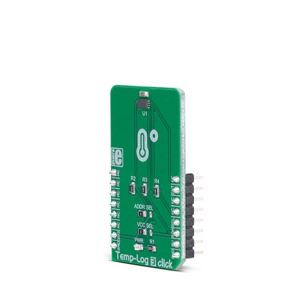 Temp-Log 3 Click is a temperature measuring Click board™ featuring the MCP9843 IC, an accurate temperature sensor IC with integrated EEPROM. Besides the thermal sensor, this IC is equipped with additional 256 bytes of EEPROM. This can be a very useful option for some applications: it allows any data to be stored within the same IC, so no additional EEPROM IC is required. This can simplify the design, reducing the number of additional components. The thermal sensor itself includes some great features such as the programmable interrupt engine, measurement range from -20°C to +125°C, accuracy up to ±1°C typically, and more.