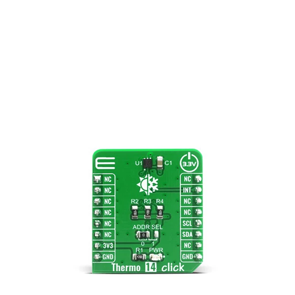 Thermo 14 Click uses the STTS22H digital temperature sensor and thermal watchdog, which can measure temperature measurements between -40°C and +125°C so that the temperature measurement data can be processed by the host MCU. Thermo 14 Click provides an accuracy of ±0.5°C in the range from -10°C to 60°C. The sensor used on this Click board™ has a great combination of features that make it a perfect choice for any temperature measurement application: low temperature drift, low power consumption, programmable alert engine, compact sensor size, critical temperature warnings, and more. The sensor itself requires almost no external components, which simplifies the design, reducing the cost and cutting the time to market.
