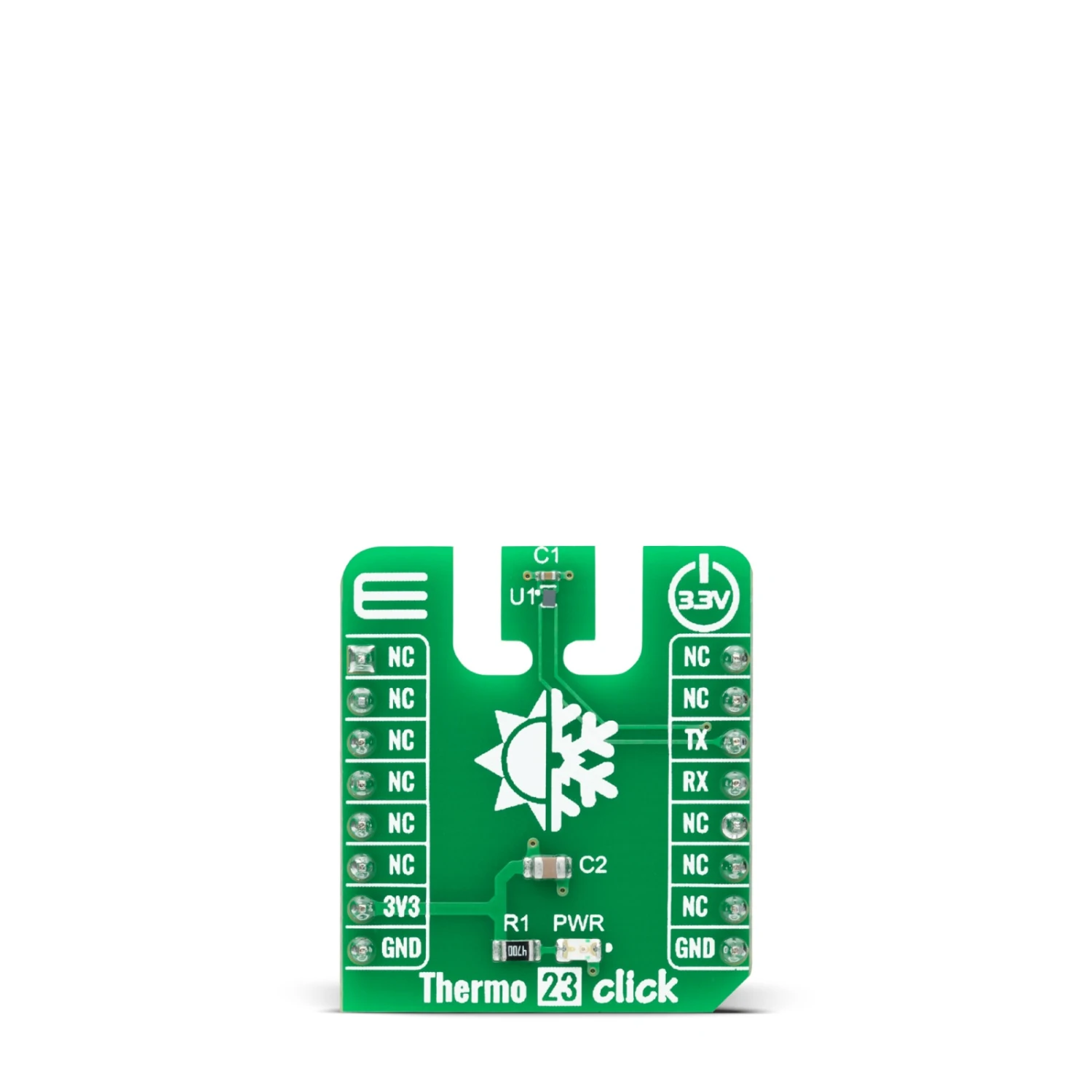 Thermo 23 Click as its foundation uses the TMP144, a digital temperature sensor optimal for thermal management and thermal profiling applications from Texas Instruments. This temperature sensor is characterized by high accuracy; a temperature range of -10°C to +100°C provides typical ±0.5°C accuracy. The temperature sensing device for the TMP144 is the chip itself. A bipolar junction transistor inside the chip is used in a band-gap configuration to produce a voltage proportional to the chip temperature. The voltage is digitized and converted to a 12-bit temperature result in degrees Celsius, with a resolution of 0.0625°C.